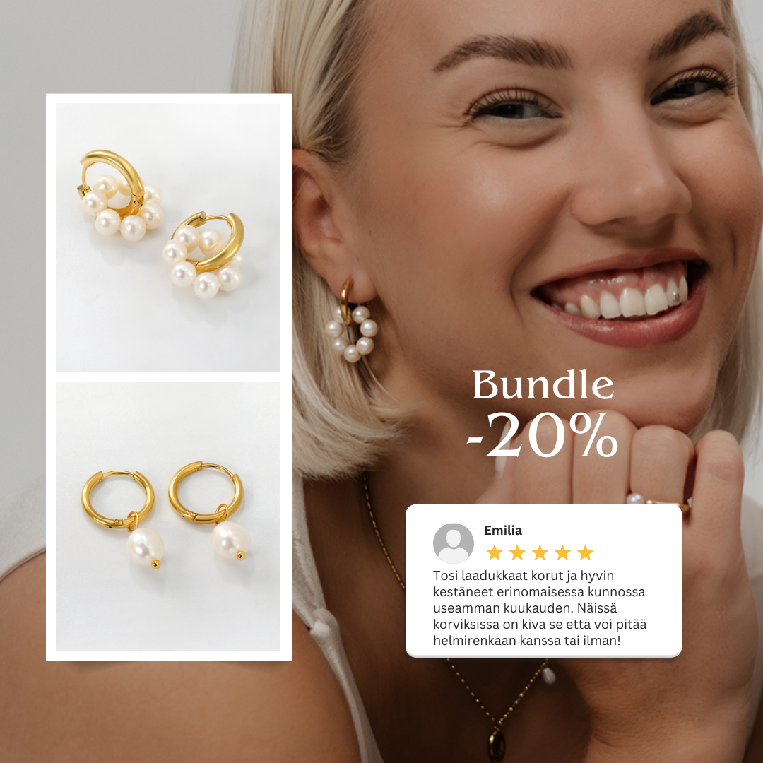 Tosi laadukkaat korut ja hyvin kestäneet erinomaisessa kunnossa useamman kuukauden. Näissä korviksissa on kiva se että voi pitää helmirenkaan kanssa tai ilman!