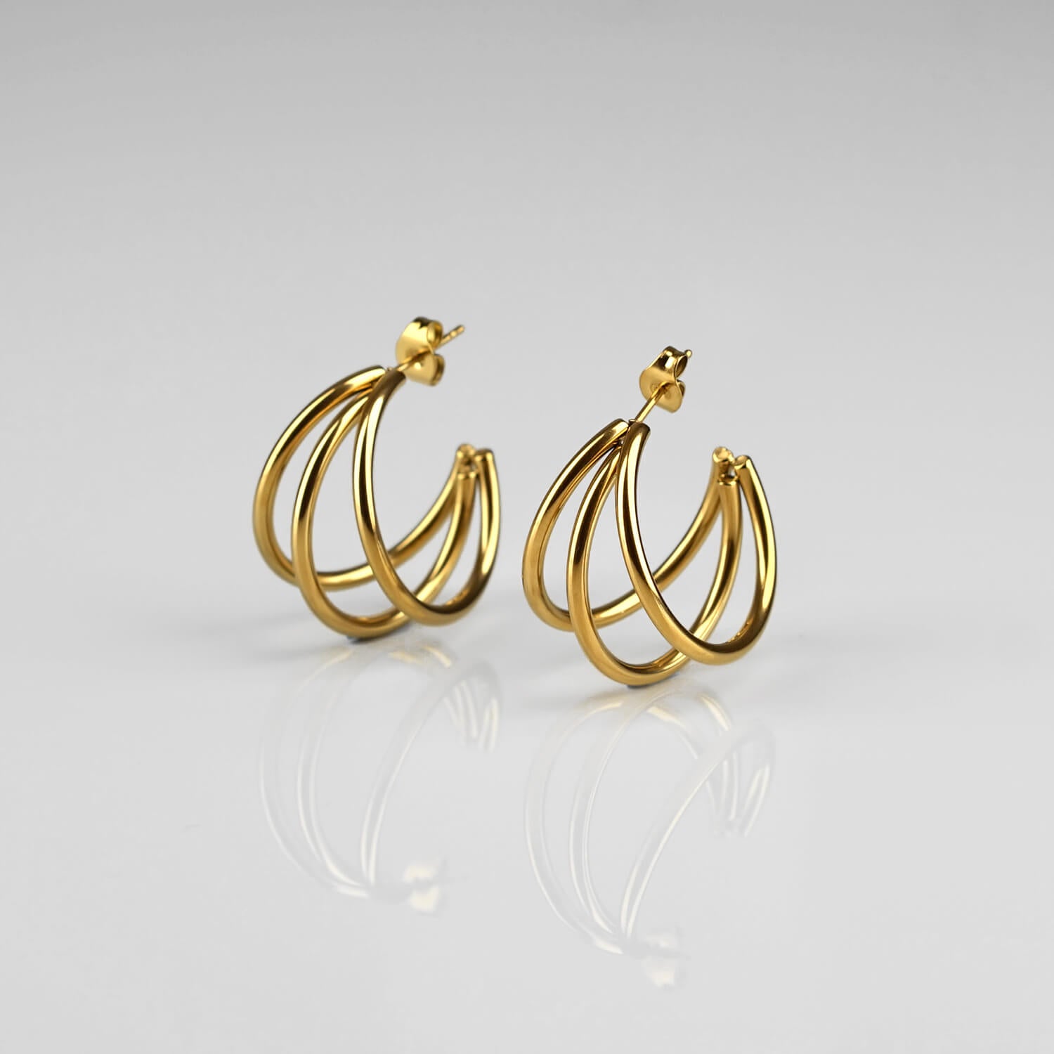 Unser Sortiment umfasst hochwertige Ringe, Armbänder, Ohrringe und Halsketten aus vergoldetem Edelstahl.
