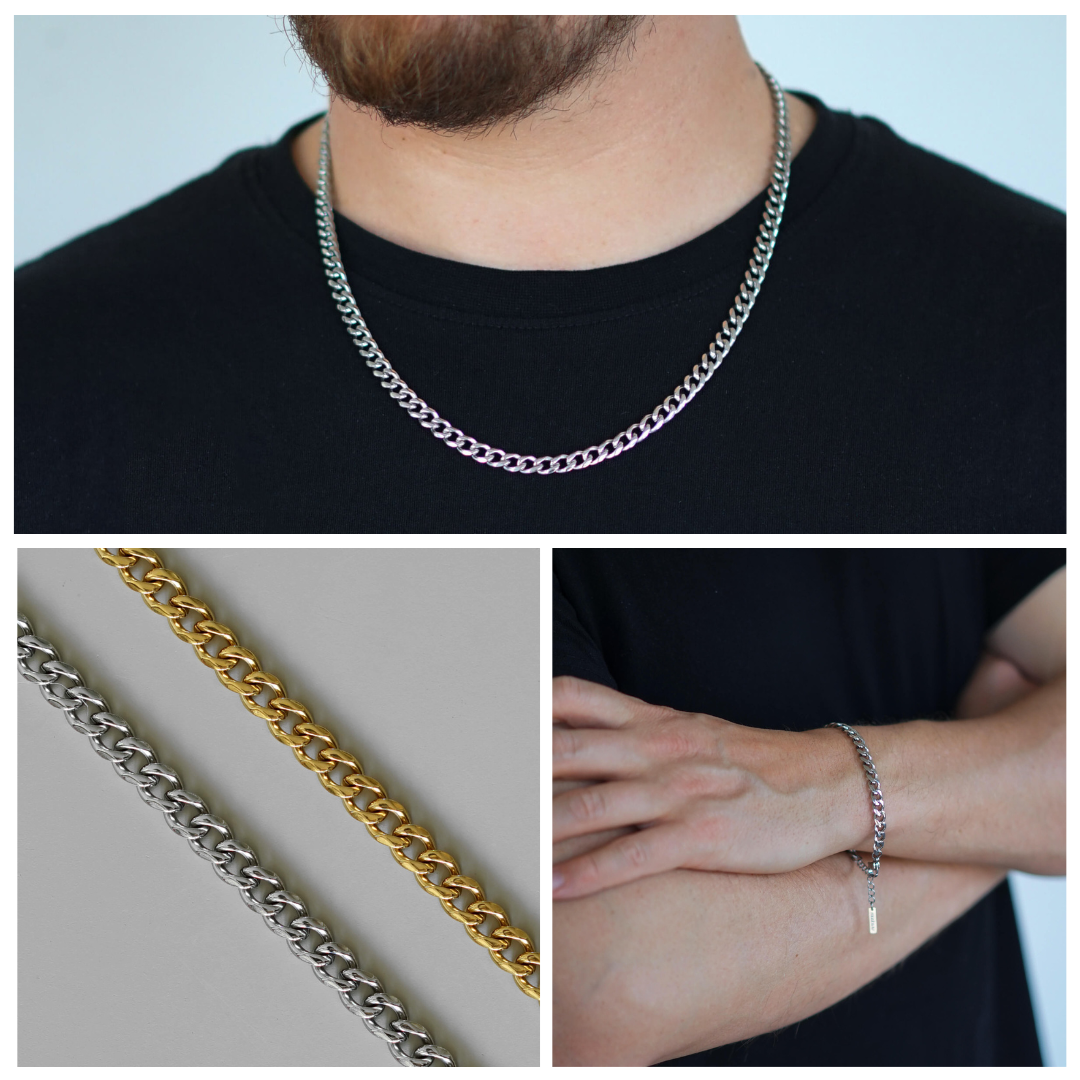 Entdecken Sie das neue, stylische Madowwn Unisex Cuban Chain Set, bestehend aus einer Cuban Chain Halskette und einem Armband. Dieses Set ist die perfekte Ergänzung für jede Schmuckkollektion – sowohl für Männer als auch für Frauen. Cuban Chain Schmuck verleiht Ihrem Alltag einen Hauch von Luxus und passt perfekt zu vielen Outfits. Ob klassisch, modern oder etwas dazwischen – dieses Set wird Sie begeistern.