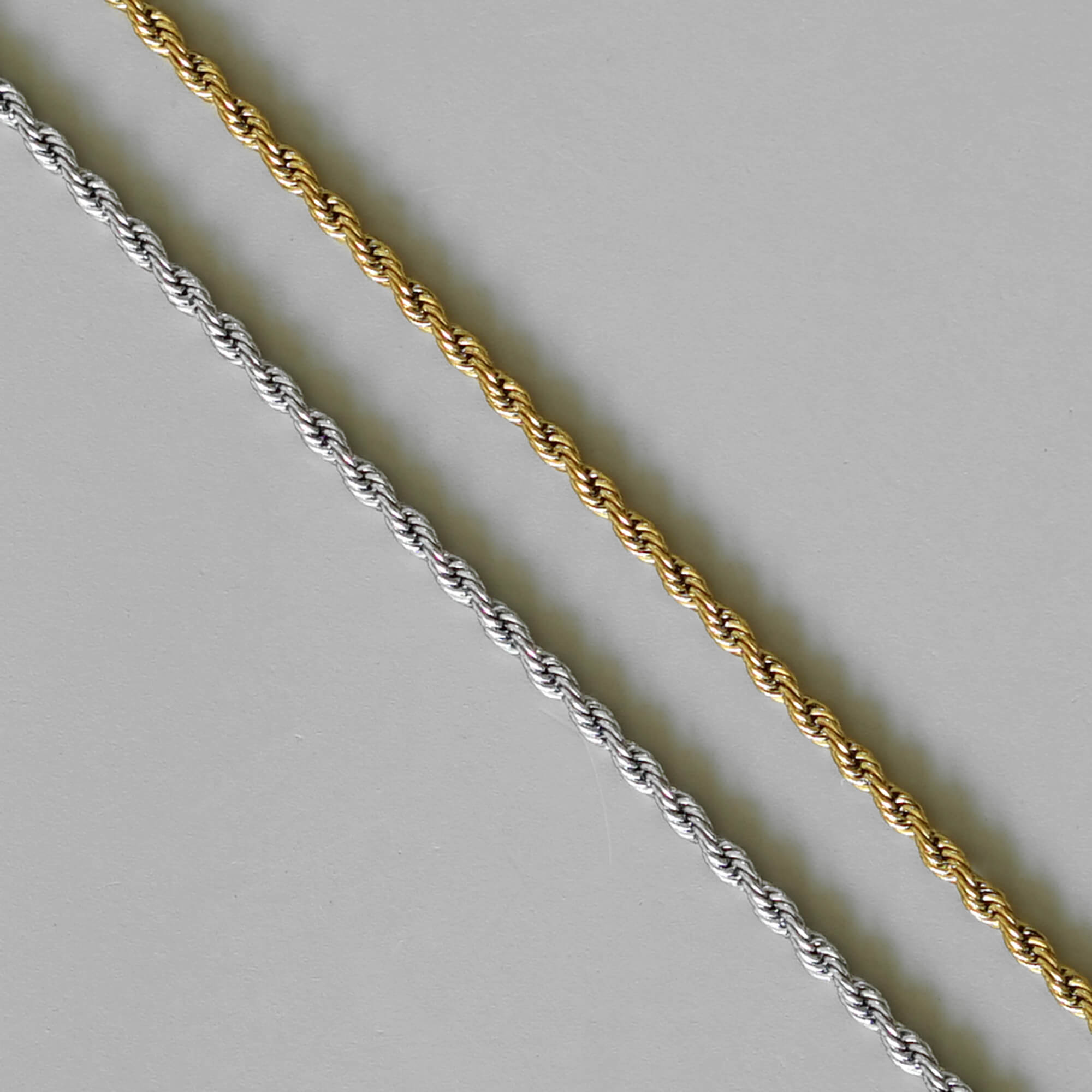 Diese Halskette ist nicht allein! Wir haben auch ein passendes Rope Chain Armband, das die Halskette ergänzt und einen einheitlichen, stilvollen Look kreiert. Das Armband besteht aus demselben hochwertigen Edelstahl und ist in den gleichen Farben wie die Halskette erhältlich – 18 Karat vergoldet und versilbert.
