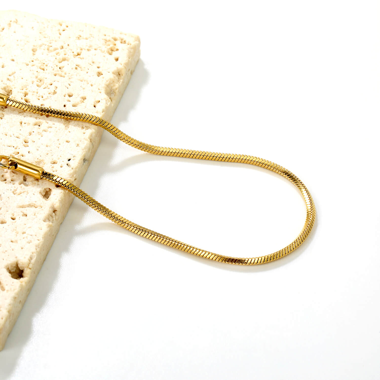 Das Ivy Armband ist eine stilvolle und zeitlose Wahl, die Ihrem Outfit eine subtile Note verleiht. Das minimalistische Design und die wunderschön geschwungene Schlangenkette machen es perfekt für Alltag, Arbeit und Partys – allein oder kombiniert mit anderem Schmuck.