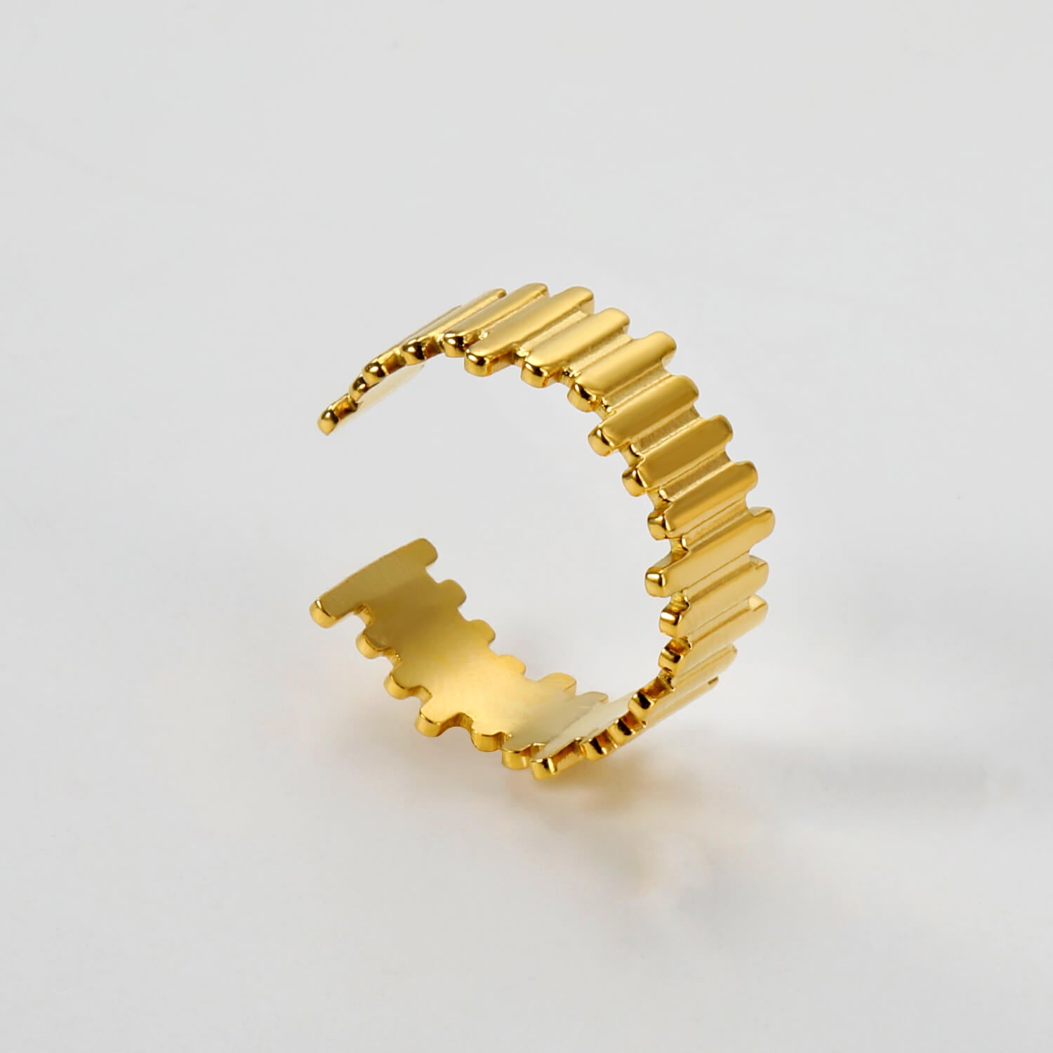 Der Vault-Ring ist aus hochwertigem Edelstahl gefertigt, was seine Langlebigkeit und Haltbarkeit gewährleistet. Der Ring ist mit einer langlebigen PVD-Technologie mit 18 Karat Gold beschichtet, die den Glanz des Rings lange erhält. So behält der Ring auch bei täglichem Gebrauch seine Schönheit.