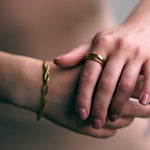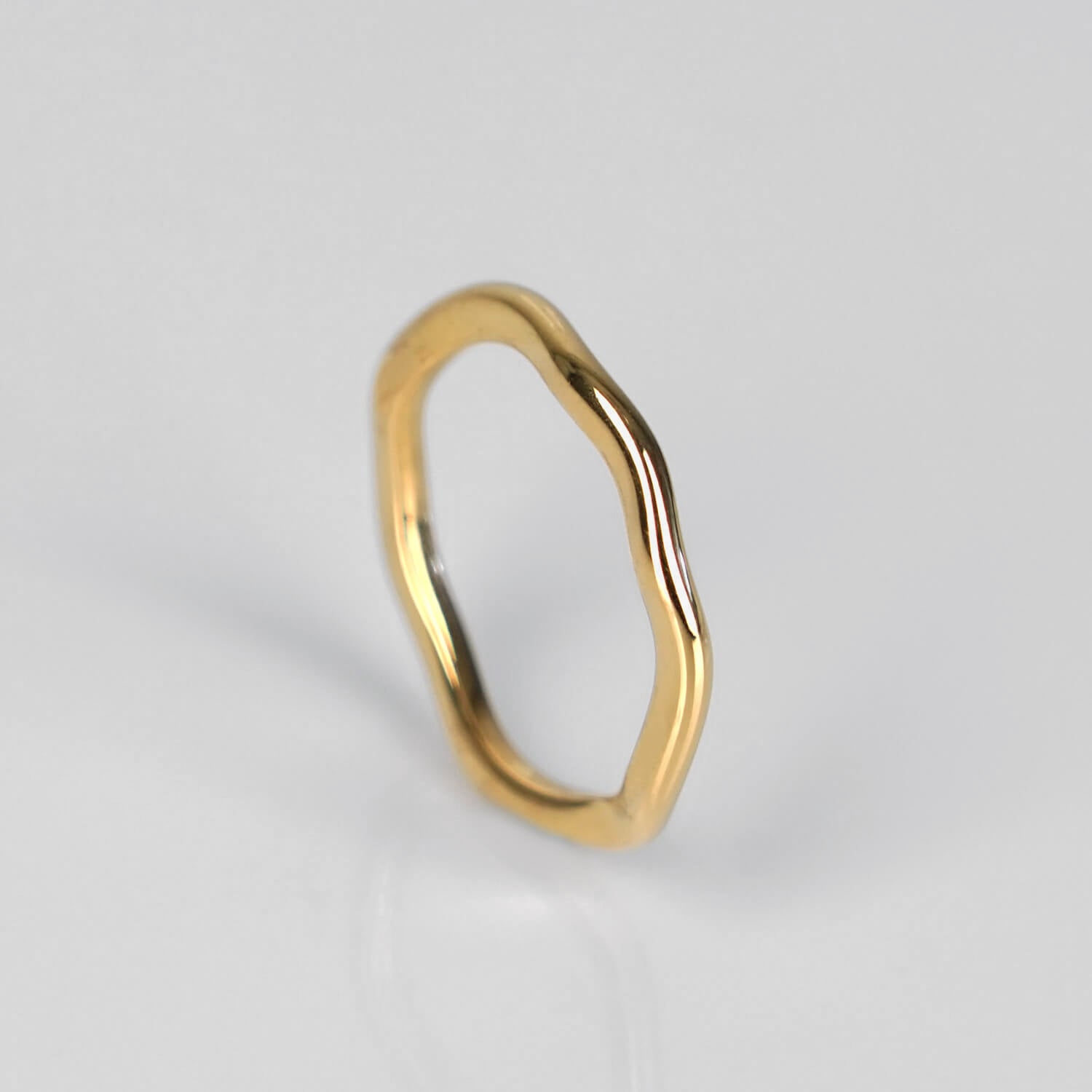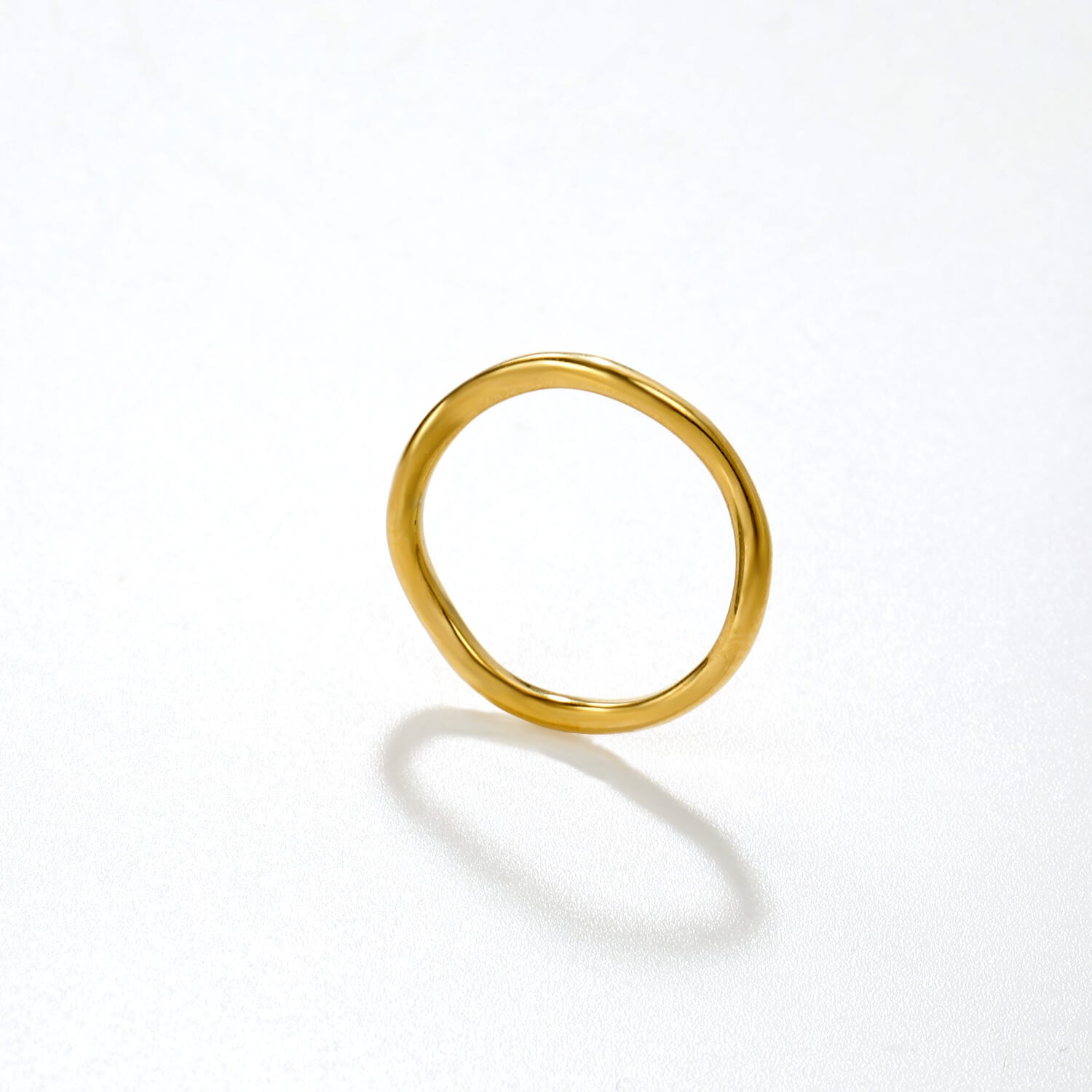 A gold-plated stainless steel ring with a wavy design represents style, durability and elegance. The ring is made of high-quality gold-plated stainless steel, which ensures its durability and longevity.