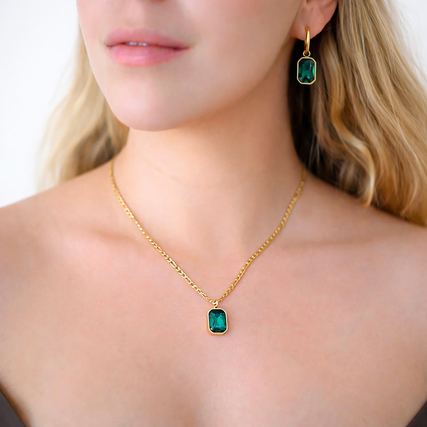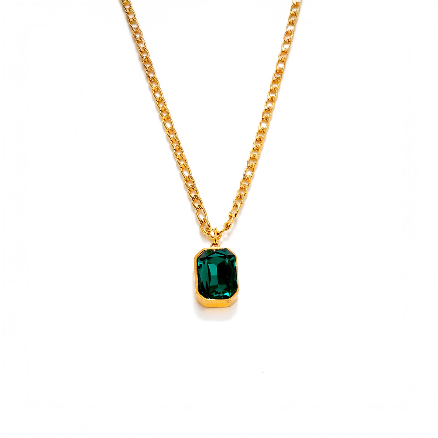 Korun keskiössä on kirkas vihreän värinen zirkoni, joka heijastaa valoa upeasti ja tuo kaulakoruun modernia ylellisyyttä. Minimalistinen mutta huomiota herättävä design tekee tästä kaulakorusta monikäyttöisen suosikin.